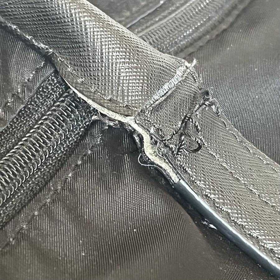 持ち手付け根部分に糸ほつれあり。ダメージあり。