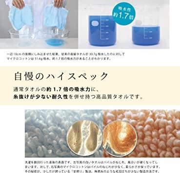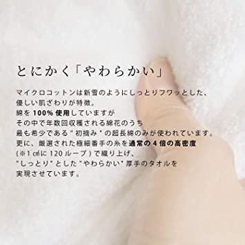 タオル用途に開発された、最高級インド超長綿 “ マイクロコットン ” 。 この中から、さらに厳選された原綿のみを使用した細番コーマ糸で高密度に織り上げたタオルは、 「 タオル 」 というジャンルを超え、まるで絨毯のようにフカフカとした肌ざわりです。 一般的なタオル、さらにはマイクロコットンと比べてみても、その差は歴然! ふわふわ、ふかふかとしたボリュームをお楽しみ頂けます。 吸水性も抜群で、お風呂上がりの濡れた肌も水分をスーッと吸い込んでいくので、ベタベタ感がなく快適にお使い頂けます。 究極のタオルを追い求めて完成させた 「 マイクロコットン 」 のさらに上を行いく、 「 マイクロコットン プレミアム 」。 タオルに求められる吸水性、耐久性などの機能性はもちろん、毎日快適にお使い頂けるよう、シンプルなデザインと上品
