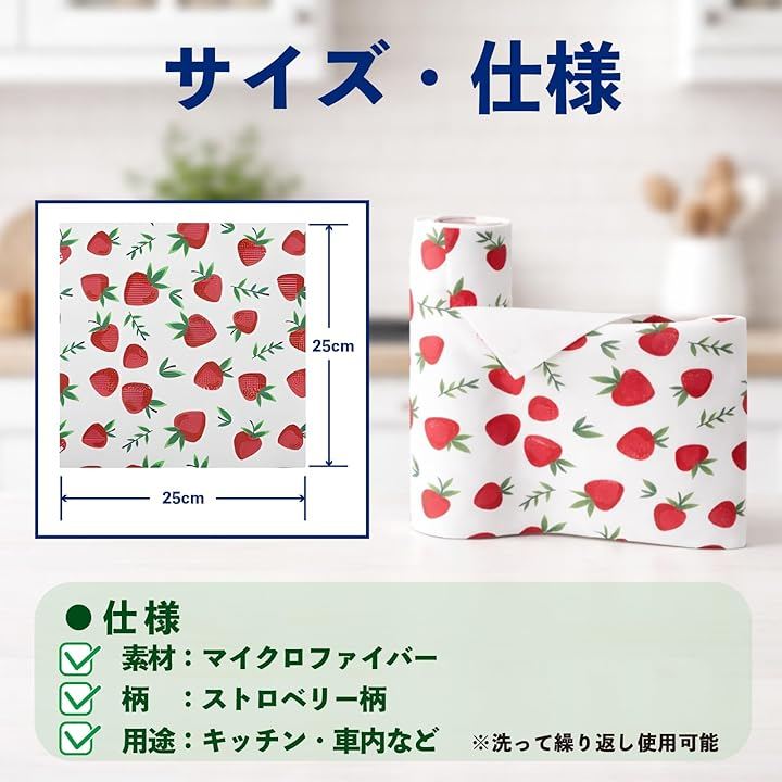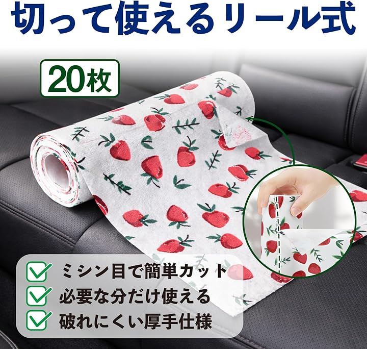 破れにくい厚手の生地で、必要な時にサッと1枚取り出して、洗車や車内の拭き掃除、キッチン周りなど、シーンを選ばず手軽に使用できます。