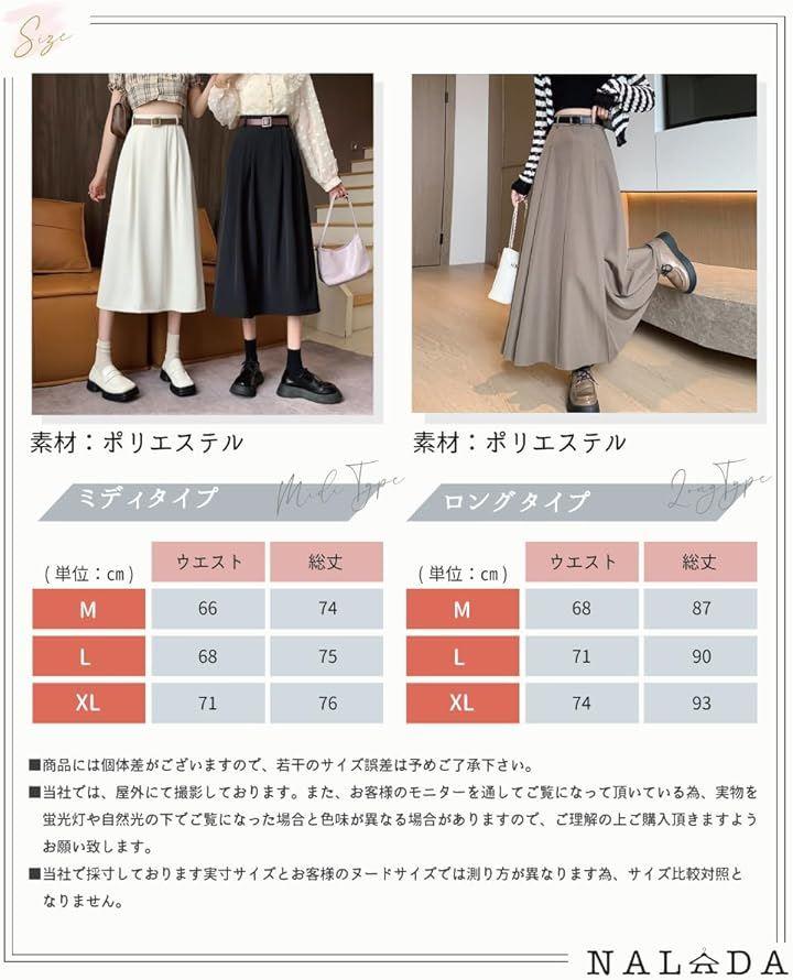「ミディタイプ」*カラー:ブラック・ホワイト・ブラウンの4色 *サイズ:ウエスト/総丈:「M」66/74「L」68/75「XL」71/76