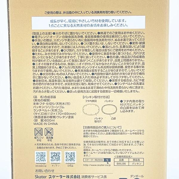 お洒落な竹製ランチボックスです。成長が早く、環境にやさしい竹材を使用しています♪お弁当箱の1/2に入るご飯の量は約1杯(お茶碗1杯:約200ml)詰めやすい仕切付き。フタ裏には汁もれしにくいパッキン付き。嬉しいランチベルト付き♪【容量:600ml】