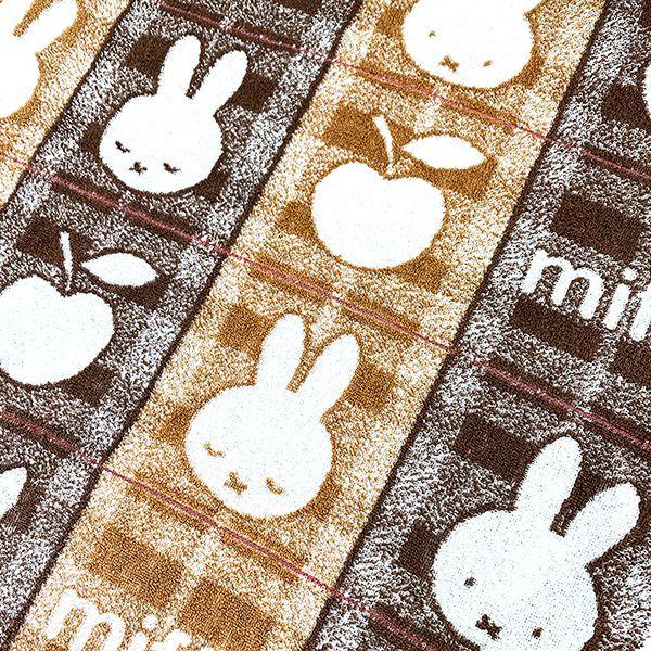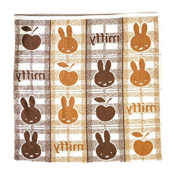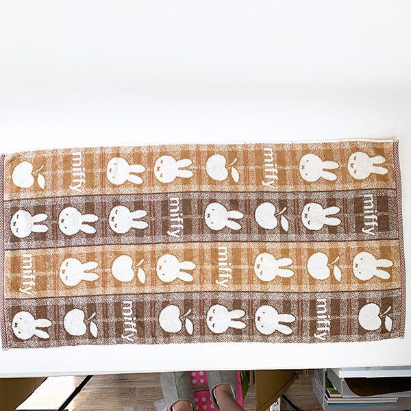 ミッフィーのお顔とチェック柄のデザインがかわいい♪ジャカード織の柔らかな肌ざわりのタオルです。