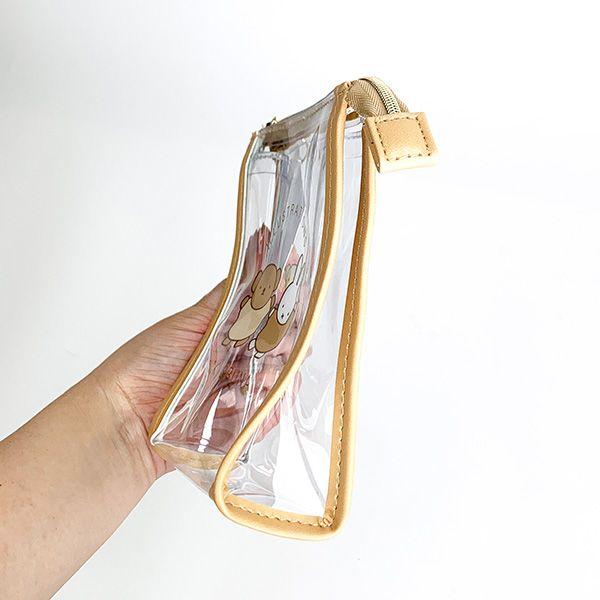 クリア素材とシンプルなイラストがかわいいクリアワンポイントシリーズ。珍しい縦型ポーチで中身も見えるので、いろいろな使い方ができそうです◎◆サイズ:15cm×12cm×5cm