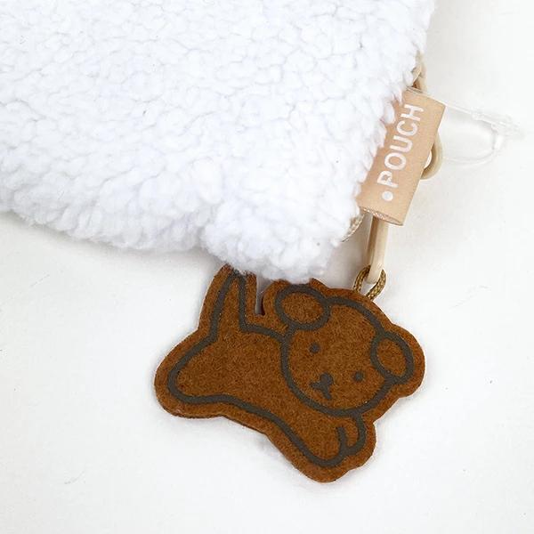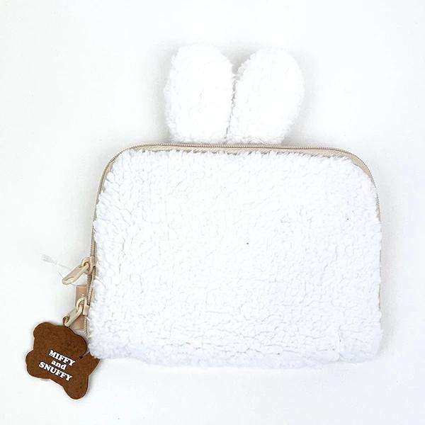 ふわふわのボア生地を使った、ショートタイプのどっとポーチです。コスメやイヤホン・パスポートなど小物の収納にピッタリ。引手に付いたミッフィーのモチーフもめちゃくちゃ可愛い♪中に保冷剤を入れてアイピロー・リラックスタイムにもなりますね。