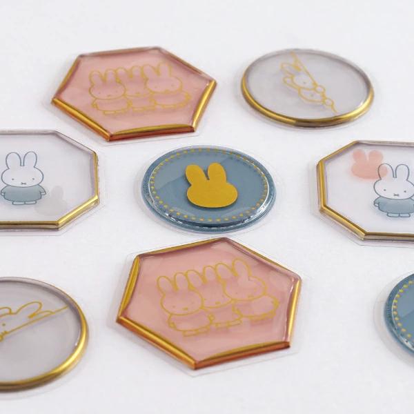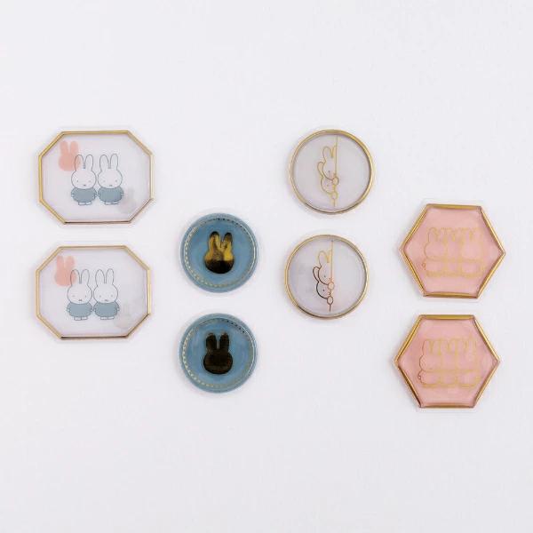 ミッフィーとブルーナさんのあたたかみのあるモチーフを絶妙なくすみのカラーリングで組み合わせたシリーズのフレークシールです。色の重なり方や素材感にもこだわった可愛いデザイン☆金箔押しをふちや絵柄にほどこしているのがポイント♪厚みのあるクリア素材なのでスマホやノートなどのデコレーションにぴったりです。ぜひ同シリーズでお好きなアイテムを揃えてみてください☆彡【サイズ:4cm×4cm以内】※4柄各2枚、計8枚入り
