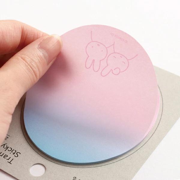 グラデーションとミッフィーのイラストをシンプルに組み合わせたシリーズでほんのり透け感がある、マットな質感の、温かみのある手触りな素材にもこだわった大人の方に是非お使いいただきたいシリーズです♪こちらのふせんはほんのり透け感+オーバル型が可愛いオシャレ可愛い付箋です☆ちょっとしたメッセージにを添えるのにおススメです。