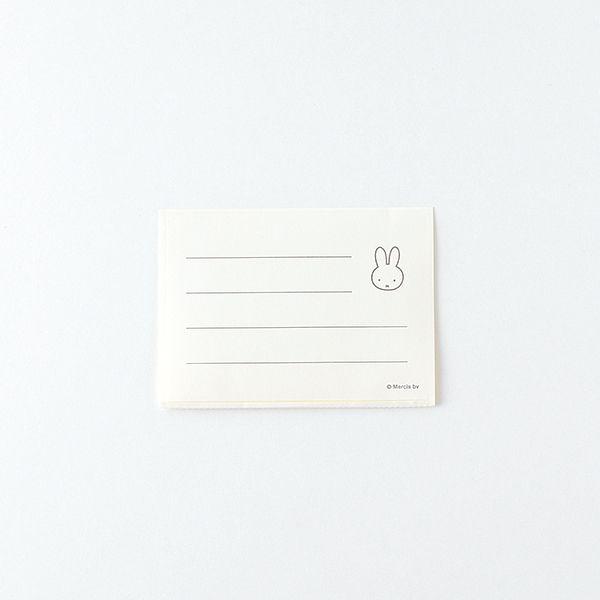 ミッフィーの顔型で窓抜きされた台紙には中面に描かれたミッフィーの表情がかわいくはまっています♪トレーシングペーパー素材の封筒と、ミッフィーのワンポイントが入った宛名シール付き。大切な人に気持ちを伝えてみませんか?