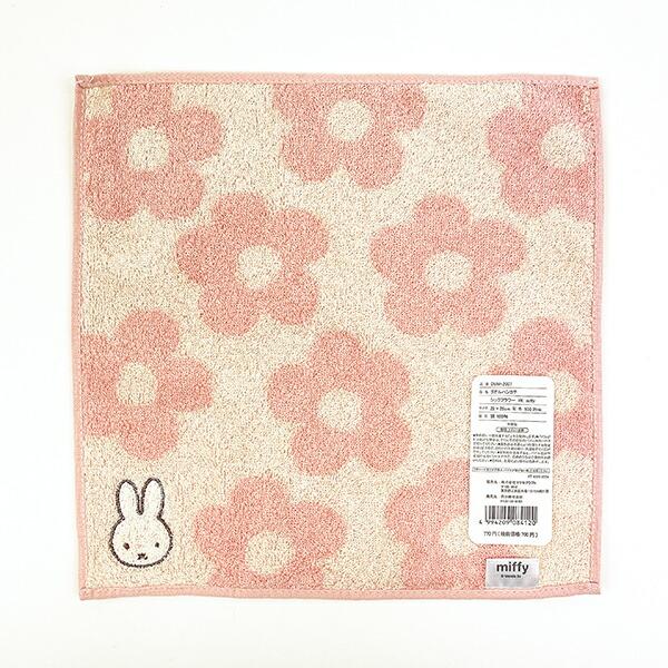 タオルのように吸水性にも優れていて、小さいため持ち運びにもとても便利なミッフィーのタオルハンカチ♪大柄のフラワー柄とミッフィーのワッペンがカワイイ♪