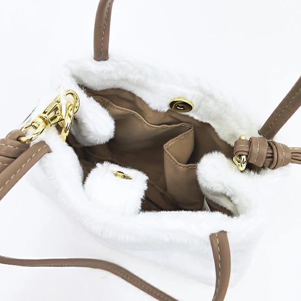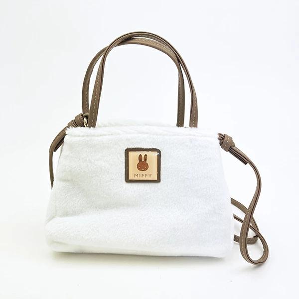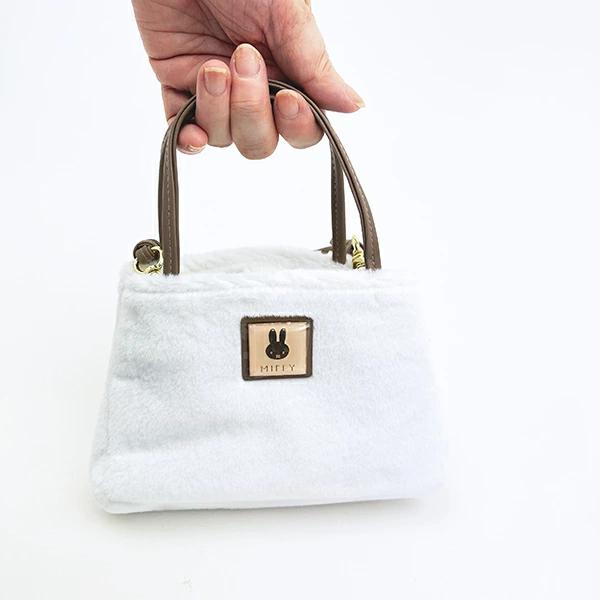 ふわふわの手触りが気持ちいいミッフィーの横型ミニショルダーバッグです。スマホやお財布、ハンカチやリップなど、バッグに収納する荷物はコンパクトに身軽でいきたい方にぴったりなサイズ感♪ショルダーベルトは取り外し可能なので、ハンドバッグとしても使える2WAY仕様が嬉しいポイント☆バッグのサイドにボタンがついているので気分によって形が変えられて◎内側にポケット付き。ミッフィーのプレートが高級感があり高見えしちゃいます♪秋冬にぴったりなバッグなのでぜひコーディネートに取り入れてみてください☆彡