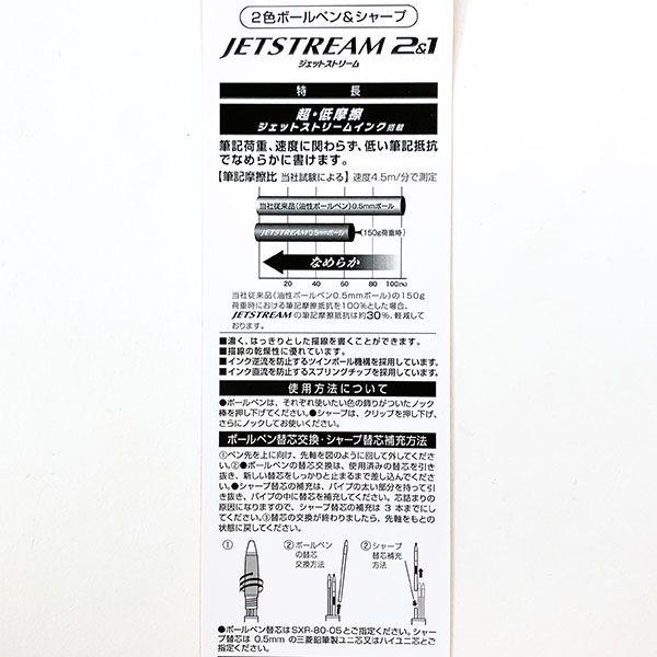二色のジェットストリームです。色は赤と黒で、太さは0.5cmと一般的な使いやすい太さです。中央部分にはミッフィーの可愛いイラストが♪