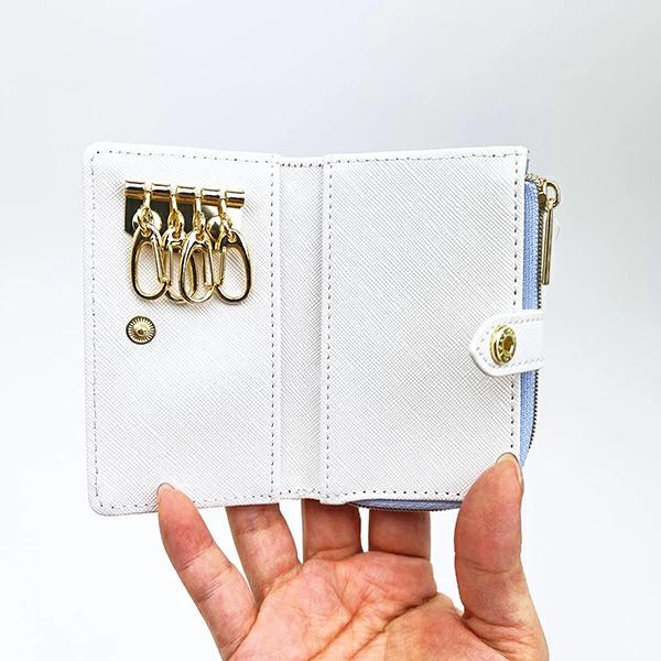 シンプルなデザインのミッフィーのキーケースです。ミッフィーと裏面にはキュートな白いお花♪鍵は4つ付けられ、ファスナーポケットも付いているので、小銭を入れることもできます☆彡