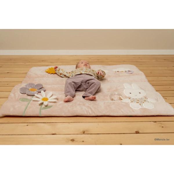 リトルダッチミッフィーならではのローズピンクのふわふわプレイマット。ベビーの大好きなしかけがいっぱい。太陽をめくるとミラー、雲にはティーザー、花びらにはパリパリ♪ミッフィーにはカラフルなビーズが動いて音が鳴る透明ラトルが付いています。●洗濯機で洗えます。●製品の洗濯表示に従ってお手入れをしてください。●アルコール成分を含む除菌シート等で製品を拭かないでください。変色、変形するなど製品が劣化する可能性があります。【対象年齢:おたんじょうから】