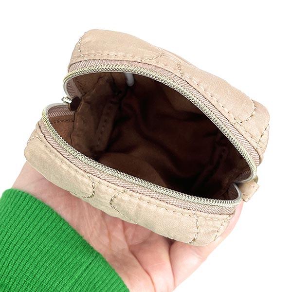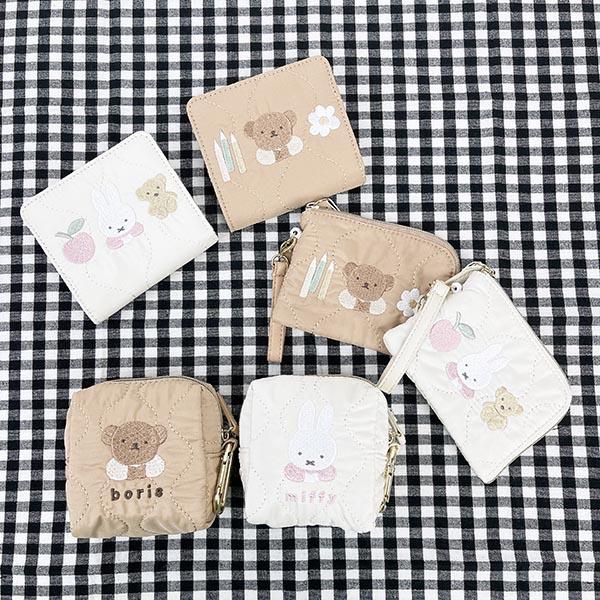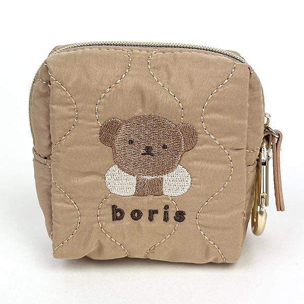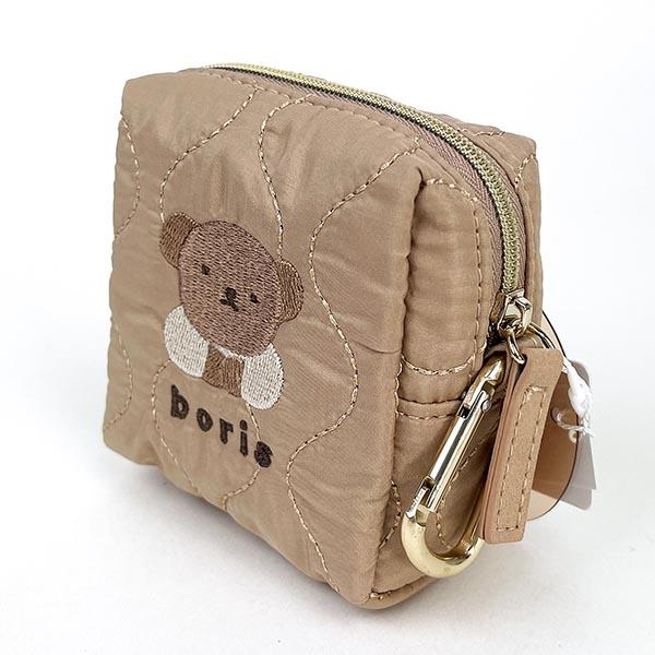 光沢感のある生地にキルティング刺繍のミニポーチ♪ボリスの刺繍とがとっても可愛らしいです。カラビナ付きでカバンに付けて持ち歩きにも◎