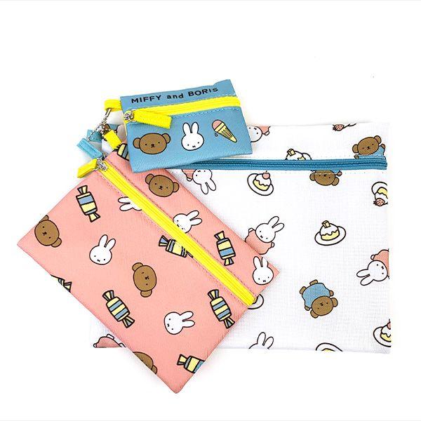 おいしそうなスイーツのアートがかわいいミッフィー「スイーツパティスリー」シリーズ。3サイズのポーチがセットになった3連ポーチは使い方いろいろ◎かわいくて便利なオススメアイテムです♪◆サイズ:L/W27×H21cm M/W19×H14cm S/W11×H8cm
