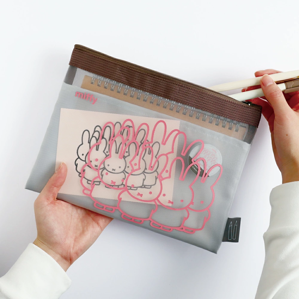 見せたいものと見せたくないものを分けて持ち歩ける3重構造のメッシュポーチです。ポップなカラーリングで明るい気持ちになれそう。A5サイズのノートも入るサイズで、文具などの小物がまとめられます。