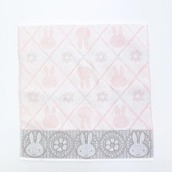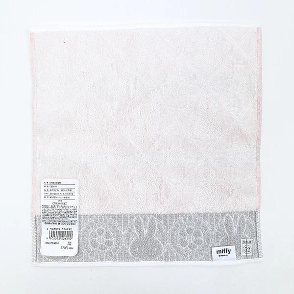 ミッフィーのミニタオルです♪優しいピンクにレース柄のミッフィーデザインがとってもおしゃれ♪ふわふわな肌触りで綿100%なので、お肌にも優しく安心して使えます♪持ち運びに便利なサイズです☆彡