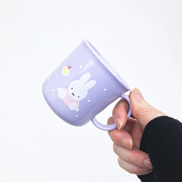 ドット柄にピンクとパープルカラーを組み合わせた女の子らしい可愛さが目を引く「ミッフィーとスイーツ」シリーズのプラコップです。あたためる程度に電子レンジOK、食洗機乾燥機対応◎【容量】200ml
