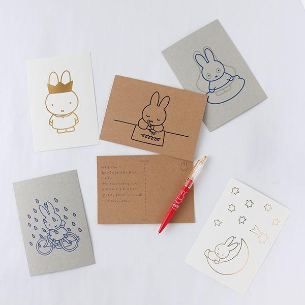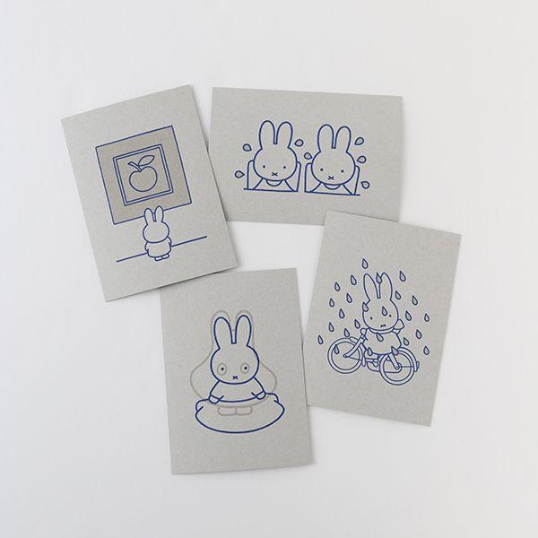 大人のためのミッフィーステーショナリーシリーズ。ディック・ブルーナのシンプルなイラストのポストカードです。グレーのボール紙に印刷と透明のニスを施しています☆