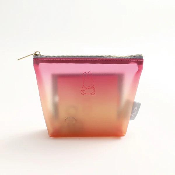 グラデーションとミッフィーのイラストをシンプルに組み合わせたシリーズでほんのり透け感がある、マットな質感の、温かみのある手触りな素材にもこだわった大人の方に是非お使いいただきたいシリーズです♪マットな質感のPVCにグラデーションをプリントした、色の重なりが美しいポーチです☆PVCの性質上、水にも強く様々なシーンで活躍します☆