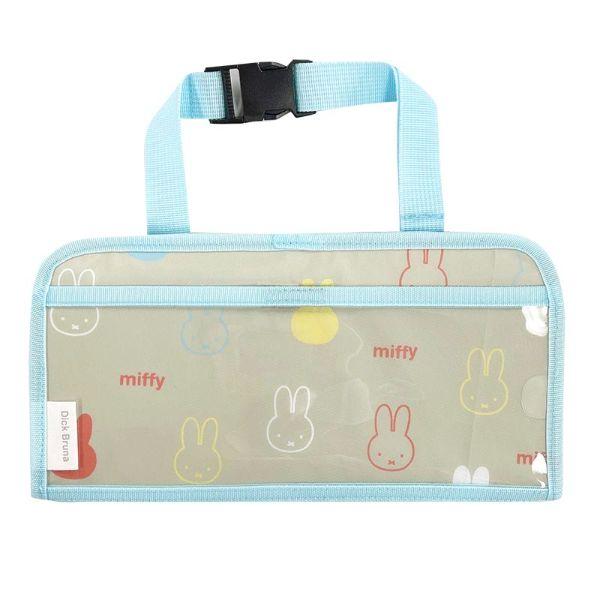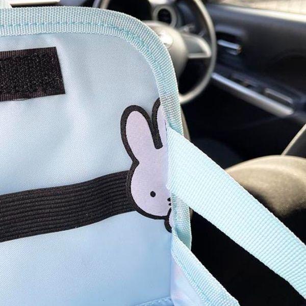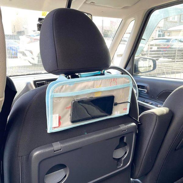 ミッフィーの快適ドライブアイテム「リアトレイ」です。前面のビニールポケットに小物を収納。開くとドリンクホルダーやお菓子なども置けちゃいます◎ドリンクホルダーのゴムバンドには、ミッフィーのロゴプリント入りです♪内側にいる、ひょっこり覗くミッフィーがポイント★