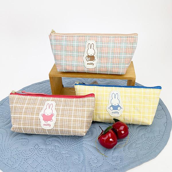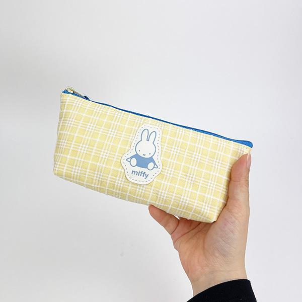 チェック柄と合皮のミッフィーダイカットワッペンがポイントのペンケース。シンプルに使えるのでとっても便利♪コンパクトながらマチもあるので文具の持ち歩きに◎