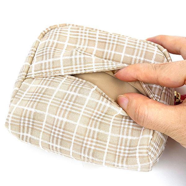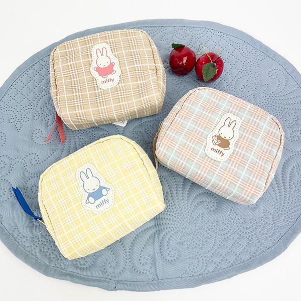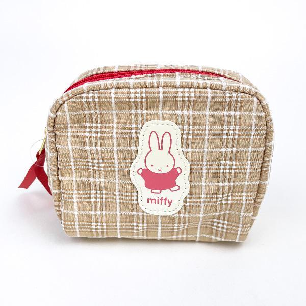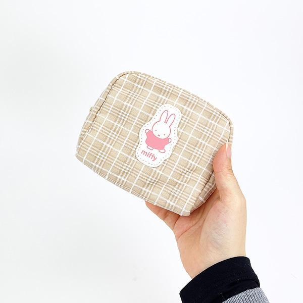 チェック柄と合皮のミッフィーダイカットワッペンがポイントのポーチ。背面にティッシュポーチが付いているのでとっても便利♪コンパクトながらマチもあるのでコスメの持ち歩きに◎