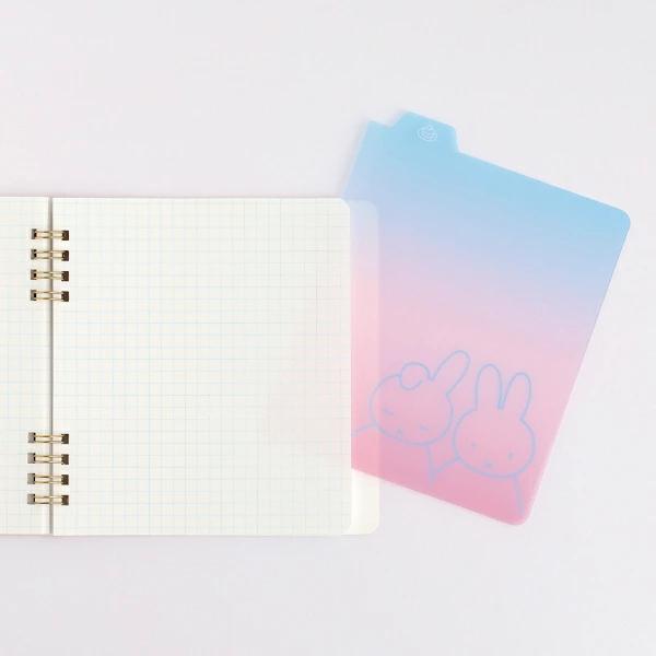 グラデーションとミッフィーのイラストをシンプルに組み合わせたシリーズでほんのり透け感がある、マットな質感の、温かみのある手触りな素材にもこだわった大人の方に是非お使いいただきたいシリーズです♪リングノート・スクエアとあわせて使うと、インデックスとしても、下敷きとしても大活躍です!マット&クリアな素材でグラデーションが優しく透け、書く時も滑らず安定します☆