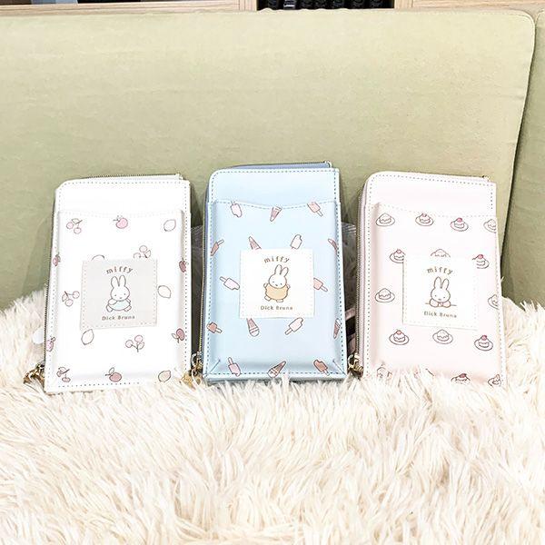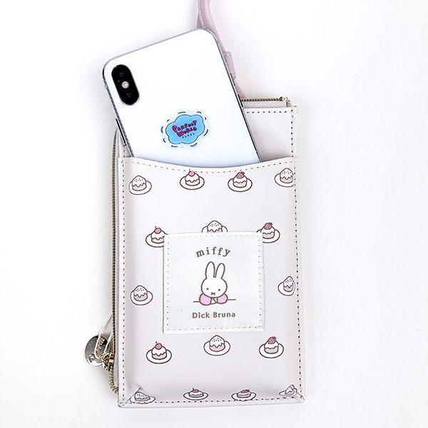 ミッフィーのおいしいものシリーズのショルダーポーチ。街を歩けば必ずよく見かける定番アイテム!幅広い年齢層で使われていますよね♪《スマホショルダーバッグのおすすめポイント》スマホやカードなど必要最低限の物だけ入れて持ち歩ける。内面はカードポケットやファスナーポケット付き。ロングポケットでお札も入る。背面にもポケットが付いているので使い勝手最高。ショルダーストラップはアジャスター調節可能。【サイズ:約110×175×20mm】