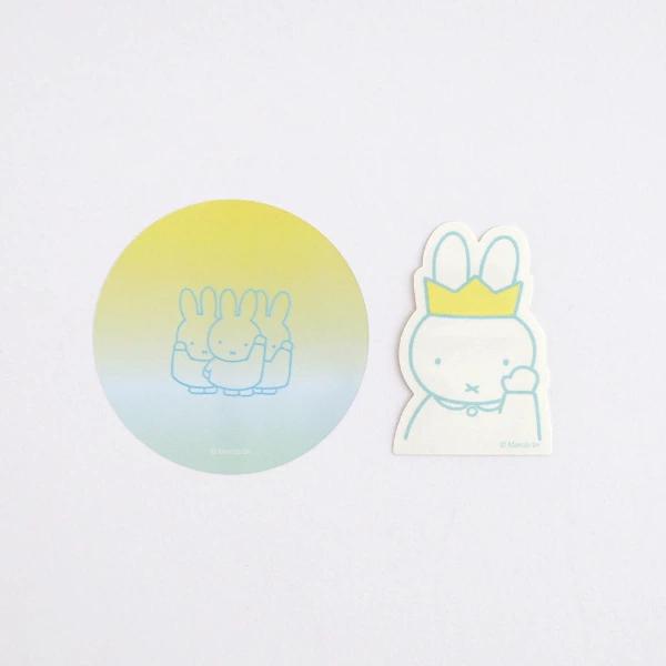 グラデーションとミッフィーのイラストをシンプルに組み合わせたシリーズでほんのり透け感がある、マットな質感の、温かみのある手触りな素材にもこだわった大人の方に是非お使いいただきたいシリーズです♪こちらのステッカーセットは透け感が美しいクリアタイプと、ミッフィー型のコート紙タイプの2種類入りです。スマホケースに挟むのにも適したサイズです☆