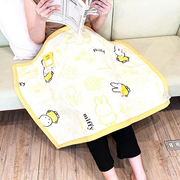 フラワーデザインがかわいいミッフィーの綿素材のひざ掛け。1年中お使いいただけます。洗濯機で洗えるので清潔に使えるのも嬉しいポイント♪