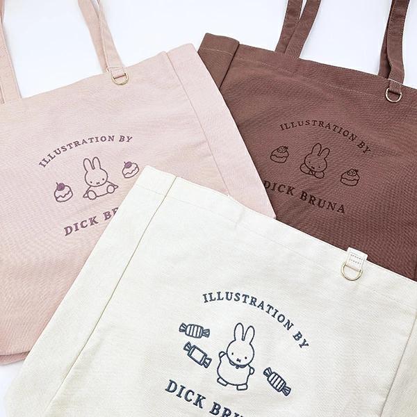 ミッフィーのフルーツ柄刺繍が入った、トートバッグです♪大人女子のくすみカラーで、とってもキュート♪A4ファイルも余裕で入る大容量サイズなので、学校やお仕事にも使えますよ☆彡