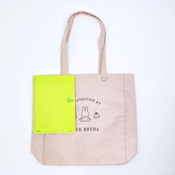 ミッフィーのフルーツ柄刺繍が入った、トートバッグです♪大人女子のくすみカラーで、とってもキュート♪A4ファイルも余裕で入る大容量サイズなので、学校やお仕事にも使えますよ☆彡