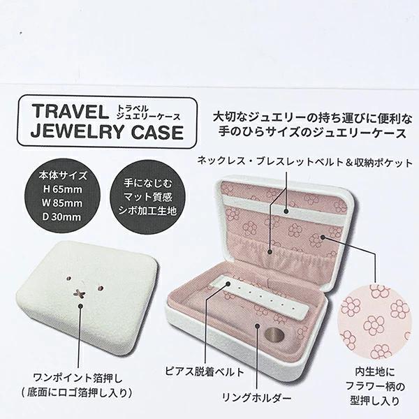ミッフィーのトラベルジュエリーボックスです♪ちょっとしたお出かけやお泊りにぴったり☆ミッフィーのワンポイント箔押し入りでくすみカラーがおしゃれ♪大切なジュエリーの持ち運びに便利なコンパクトサイズ♪ネックレスやブレスレットを引っ掛けられるベルトや、リングやイヤリングなど収納力抜群♪手になじむマット質感で高級感あります☆彡