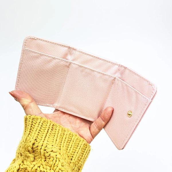 ミッフィーのコンパクトで使い勝手◎な三つ折りのお財布です。小銭入れががま口タイプで広々としており、小銭も出し入れしやすくてgood☆優しい色合いなので使う人を選びません♪コンパクトなのでバッグのスペースも気になりにくいです☆彡