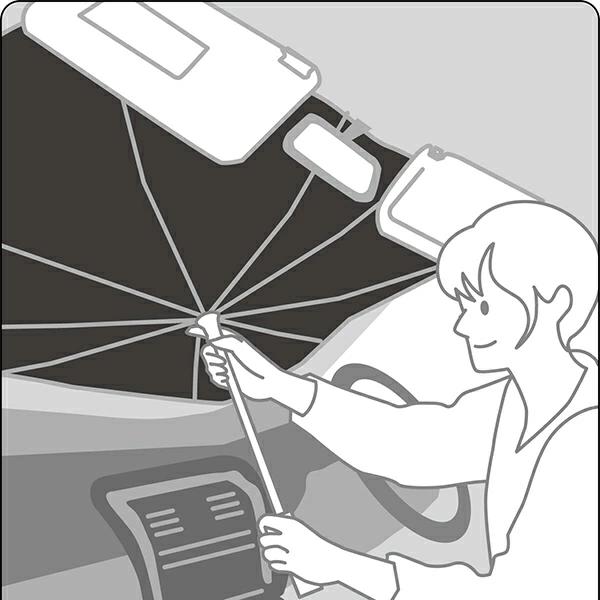 淡いベージュやグレーなどを基調としたカー用品です。どんなインテリアにもに合い車種を選びません♪こちらは暑い日に特に持っていたいサンシェードです。傘タイプなのでサッと置いて、収納はコンパクト♪注目の形になります。こちらはミッフィーフェイス柄です。
