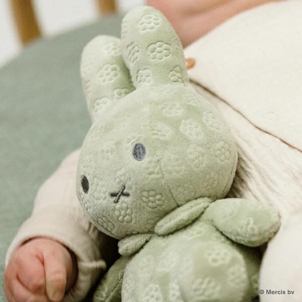 ミッフィー70周年を記念したシリーズの赤ちゃんにうれしいふわふわのさわり心地のぬいぐるみです。フラワー柄が型押しされた生地がスペシャル感たっぷり☆グレーの刺繍で柔らかな印象の顔立ちになめらかな肌ざわりがgood◎どこにでも一緒に連れて行けるサイズ感が嬉しいポイント♪振るとリンリンとかわいらしい音がなって赤ちゃんにも喜ばれること間違いなしです☆彡出産祝いやお誕生日プレゼントにぴったりなミッフィーのアイテムをたっぷり集めましたので、お好きなアイテムをお迎えしてあげてください♪●洗濯できます。●製品の洗濯表示に従ってお手入れをしてください。●アルコール成分を含む除菌シート等で製品を拭かないでください。変色、変形するなど製品が劣化する可能性があります。【対象年齢:おたんじょうから】