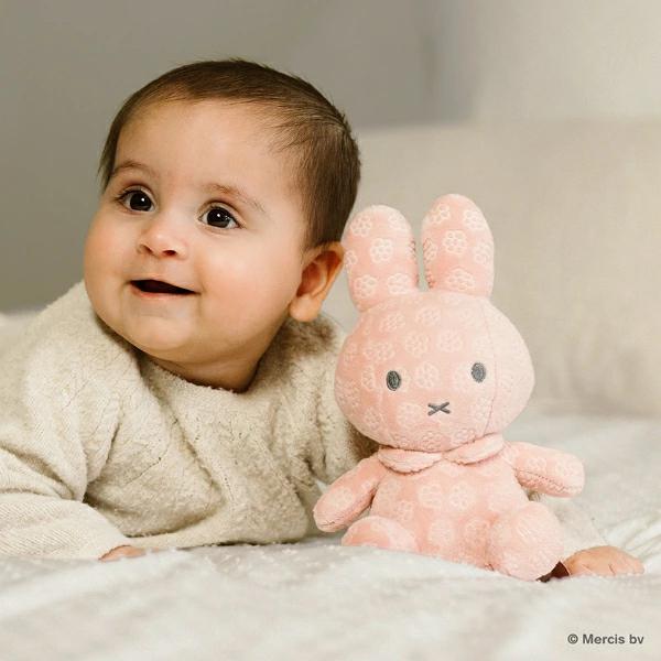 ミッフィー70周年を記念したシリーズの赤ちゃんにうれしいふわふわのさわり心地のぬいぐるみです。フラワー柄が型押しされた生地がスペシャル感たっぷり☆グレーの刺繍で柔らかな印象の顔立ちになめらかな肌ざわりがgood◎どこにでも一緒に連れて行けるサイズ感が嬉しいポイント♪振るとリンリンとかわいらしい音がなって赤ちゃんにも喜ばれること間違いなしです☆彡出産祝いやお誕生日プレゼントにぴったりなミッフィーのアイテムをたっぷり集めましたので、お好きなアイテムをお迎えしてあげてください♪●洗濯できます。●製品の洗濯表示に従ってお手入れをしてください。●アルコール成分を含む除菌シート等で製品を拭かないでください。変色、変形するなど製品が劣化する可能性があります。【対象年齢:おたんじょうから】