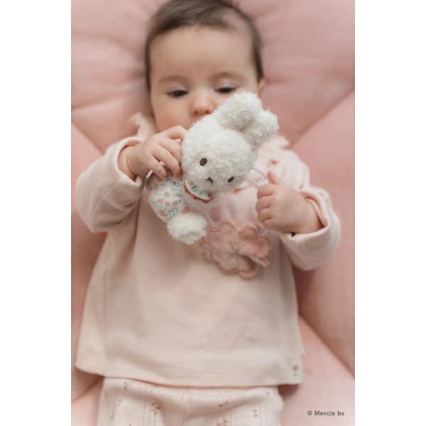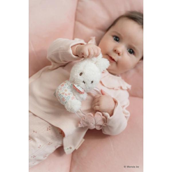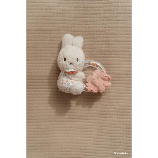 幸運をもたらすシンボルとして四つ葉のクローバーがデザインされたラッキーブロッサムシリーズ。 ミッフィーがついたリングラトルは、動かしたり振ったりするとかわいい音が鳴ります。 透明なリングの中には色とりどりの小さなボールが入っていて、ラトルを動かすとカラカラと楽しい音がするベビーが好きな鉄板アイテムです。●手洗いできます。●製品の洗濯表示に従ってお手入れをしてください。●アルコール成分を含む除菌シート等で製品を拭かないでください。変色、変形するなど製品が劣化する可能性があります。【対象年齢:おたんじょうからから】