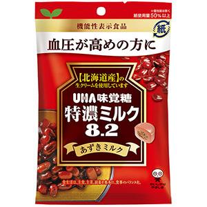 ■商品概要メーカー:味覚糖商品名:【軽】特濃ミルク8.2 あずきミルク(93g)区分:食品内容量:93g商品概要:【機能性表示食品】血圧が高めの方に。特濃ミルクで美味しく健康サポートJANコード:4902750865037商品コード:124429947■商品の特徴血圧が高めの方におすすめである、注目の成分 GABA配合のキャンディです。粉砕したあずきが飴の中央に入った「あずきミルク味」で、素材本来の味わいと濃厚なミルクの味わいを楽しめます。★血圧が高めの方にロングセラー商品として愛されているキャンディ『特濃ミルク』シリーズに、機能性素材である「GABA」を配合しました。GABAは天然に存在するアミノ酸の1種で、血圧が高めの方の血圧を、正常に維持する助けになることが報告されています。血圧が高めの方に、継続して召し上がっていただきたいキャンディです■用法・用量1日あたりの摂取目安量1日4粒■機能性関与成分本品にはGABAが含まれます。GABAは血圧が高めの方の血圧を正常に維持するのを助けることが報告されています。■原材料/成分/素材/材質砂糖、水飴、粉乳、生クリーム、練乳、植物油脂、バター、澱粉、小豆、食塩、ギャバ含有乳酸菌発酵エキス / 香料、着色料(紅麹)、乳化剤、塩化カリウム、酸味料、甘味料(アスパルテーム・L-フェニルアラニン化合物)、(一部に卵・乳成分・大豆を含む)■栄養成分4粒(18g)あたり エネルギー 77kcal、たんぱく質 0.5g、脂質 2.1g、炭水化物 14.4g、食塩相当量 0.1g / 機能性関与成分 GABA 12.3mg■アレルギー表示卵・乳・大豆■賞味期限/使用期限(製造から)1年■保存方法直射日光、高温多湿をお避けください。■メーカー希望小売価格(税込)259円■発売元/製造元/輸入元味覚糖■お問い合わせ先UHA味覚糖 お客様相談センターフリーダイヤル0120-653-910土・日・祝を除く9:00~17:00〒639-1031奈良県大和郡山市今国府町137-5https://www.uha-mikakuto.co.jp/consumer/
