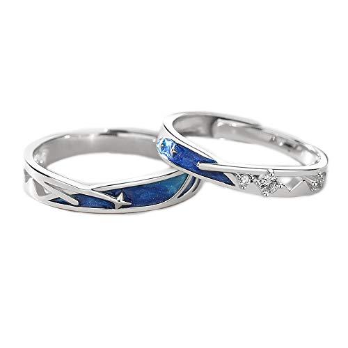 [MIKAMU] Star Love Pair Rings, Women's and Men's Rings, One Size Fits All, Heart CZ Diamond, 925 Sterling Silver