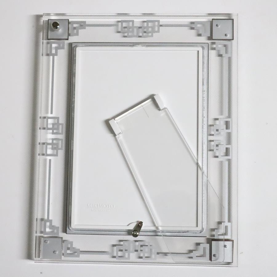 MIKIMOTOの上品なデザインのフォトフレームです。L判サイズ対応で、縦横どちらでも飾れます。箱付きのため贈り物や保管用にも適しています。