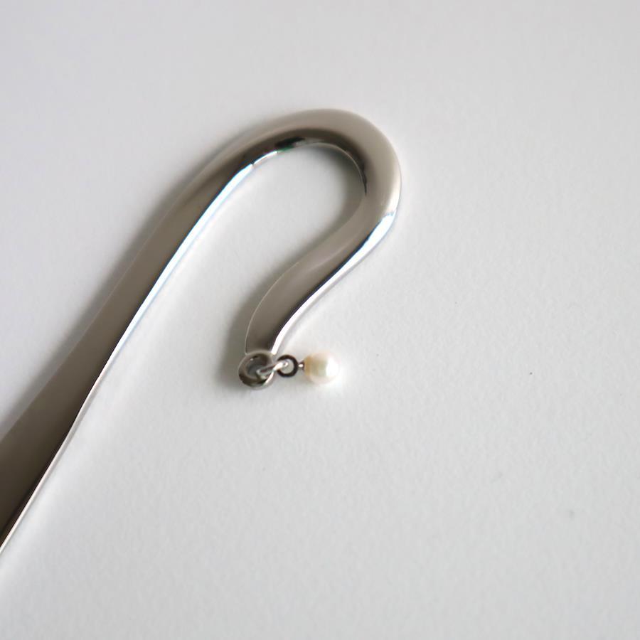 ミキモトらしいエレガンスを感じる、パール付きのステンレスブックマーカーです。