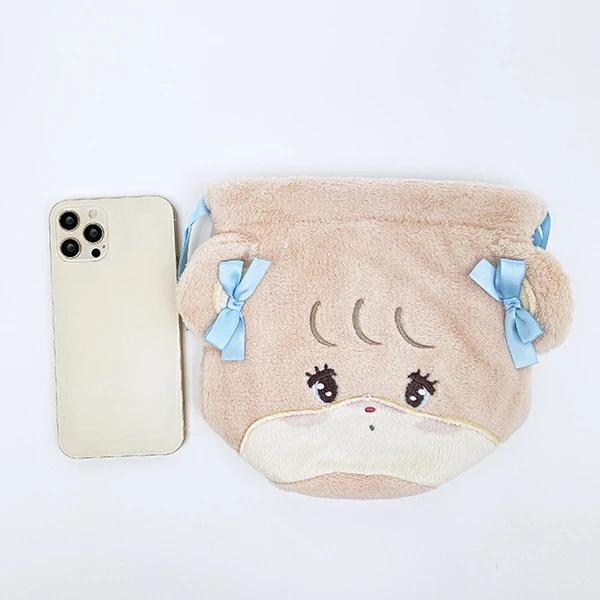 フェイスデザインの可愛い巾着です。コスメを入れても、文房具を入れてもOK♪リボンが立体的でお目目は刺?で縫ってありキラキラで可愛い♪隠したい物を隠せて持ち運びできるので便利♪