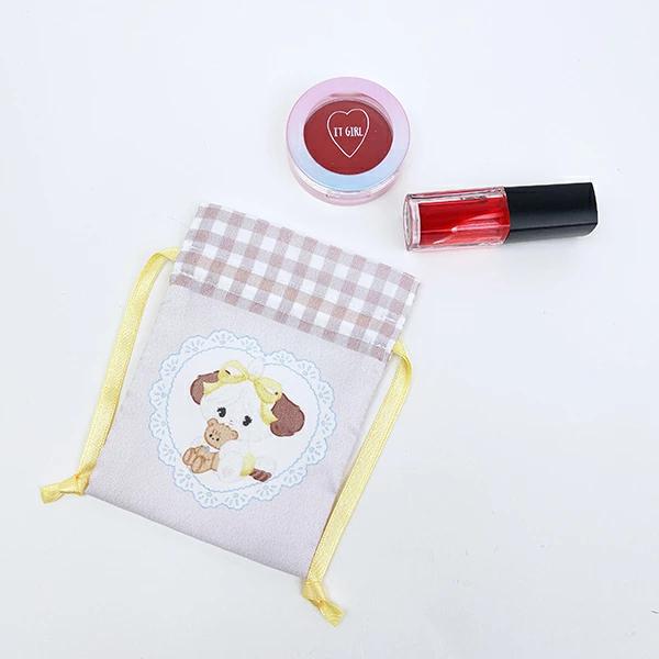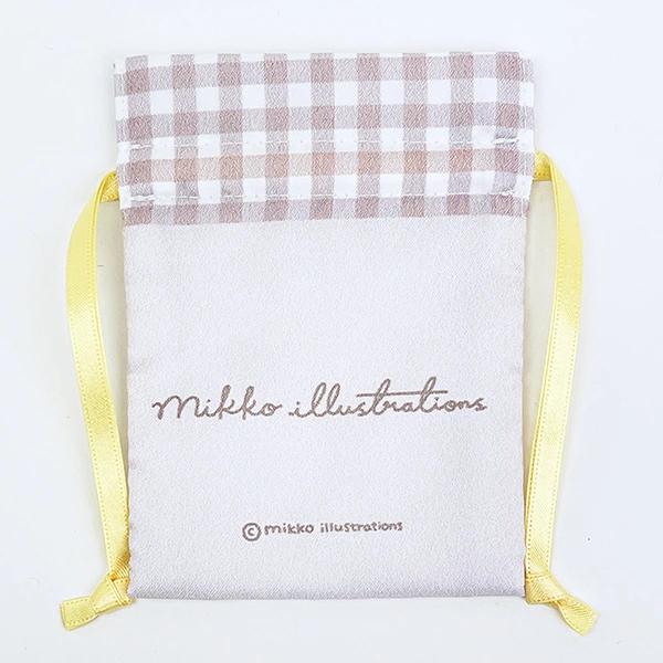 SNSなどで話題の「mikko illustrations」の巾着です。チェック柄が可愛いデザインの巾着に『スフレ』のイラスト入り◎小さめのコスメやアクセサリー、お菓子などが入るサイズ♪