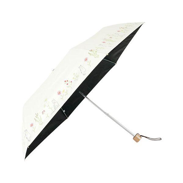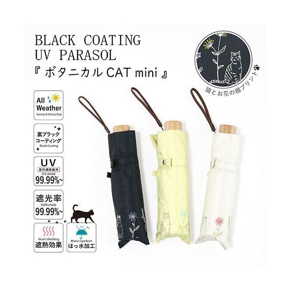 Mikuni MKN Light-Blocking & Heat-Shielding Black Coated Umbrella, 50cm Raku Mini, Botanical CAT Mini, Off-White, S2512401