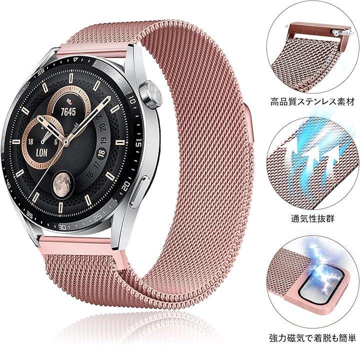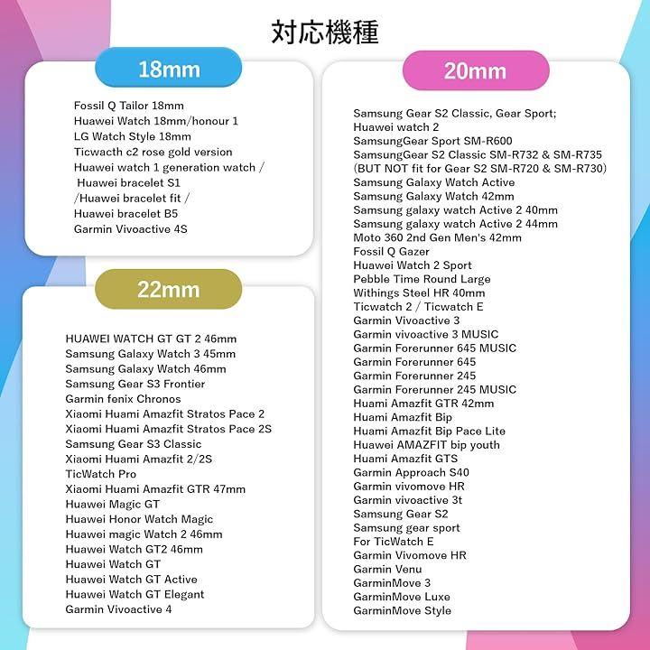 「幅広い互換性と快適な装着感」ステンレススチール製メッシュバンドは、18mm、20mm、22mm幅のラグを持つほとんどのスマートウォッチやカジュアル腕時計に対応します。