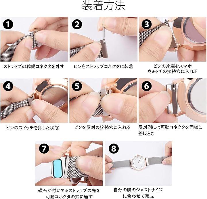 「強力なマグネットバックルによる、簡単な着脱と調整」強化されたマグネットバックルは、従来の時計ベルトよりも強力なグリップ力を持ち、装着時の脱落を防止します。