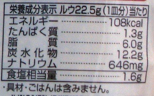原材料:小麦粉(北海道)、植物油脂[有機べに花油(オーストラリア)、パーム油(マレーシア)]、砂糖(北海道)、カレー粉(インド・他海外)、調味料[酵母エキス(日本・他海外)、麦芽エキス(イギリス)]、食塩(メキシコ)、果汁[りんご(長野・山梨)、マンゴー(インド)、パイナップル(タイ)、パパイヤ(アメリカ)]、香辛料[オニオンパウダー(アメリカ)、ガーリックパウダー(中国)]、トマトパウダー(イタリア)、(原材料の一部に大豆を含む)
