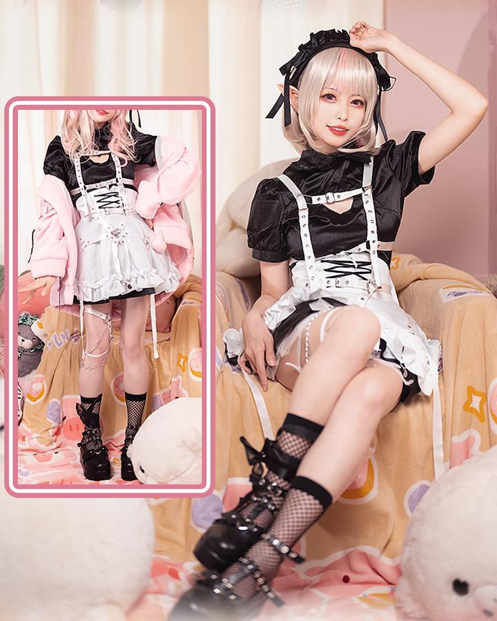 今を時めくVTuber?ダークでガーリーな今どき女子に大変身?? 地雷系ファッションには欠かせない厚底シューズ☆魔界ノりりむ仕様でとってもキュート 【Mサイズ(衣装)】バスト81-88cm ウエスト61-66cm ヒップ88-93cm 【セット内容(衣装)】パーカー+ワンピース+エプロン+ハーネス+ガーターリング+背面リボン+靴下+靴下用リボン+カチューシャ+リボン 【サイズ】38(約24cm) 【セット内容】ローファー+足首ベルト 商標取得済み 第5948808号 サイズ表記は目安であり、若干の誤差が生じる場合がございます。 また、ご利用のモニター等の環境により、実物のお色と多少異なる可能性がございます。あらかじめご了承ください。【Mサイズ(衣装)】バスト81-88cm ウエスト61-66cm ヒップ88-93cm【セット内容(衣装)】パーカー+ワンピース+エプロン+ハーネス+ガーターリング+背面リボン+靴下+靴下用リボン+カチューシャ+リボン【サイズ(シューズ)】38(約24cm)【セット内容(シューズ)】ローファー+足首ベルト今を時めくVTuber?ダークでガーリーな今どき女子に大変身??地雷系ファッションには欠かせない厚底シューズも一緒にどうぞ♪