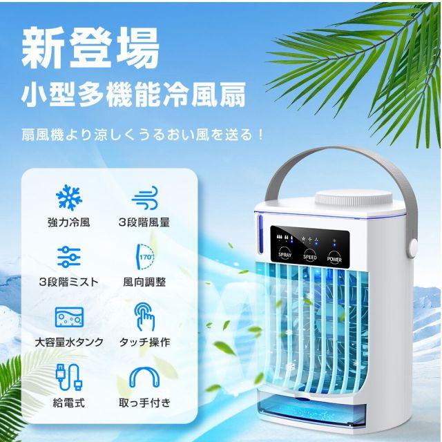 卓上サイズで1台4役〈送風・冷却・ミスト加湿・マイナスイオン空気清浄〉の冷風機。